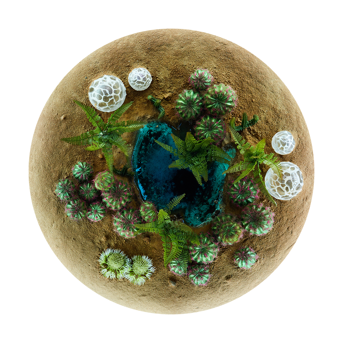 model diorama pod grassland flowers radioactive isotopes roots petals