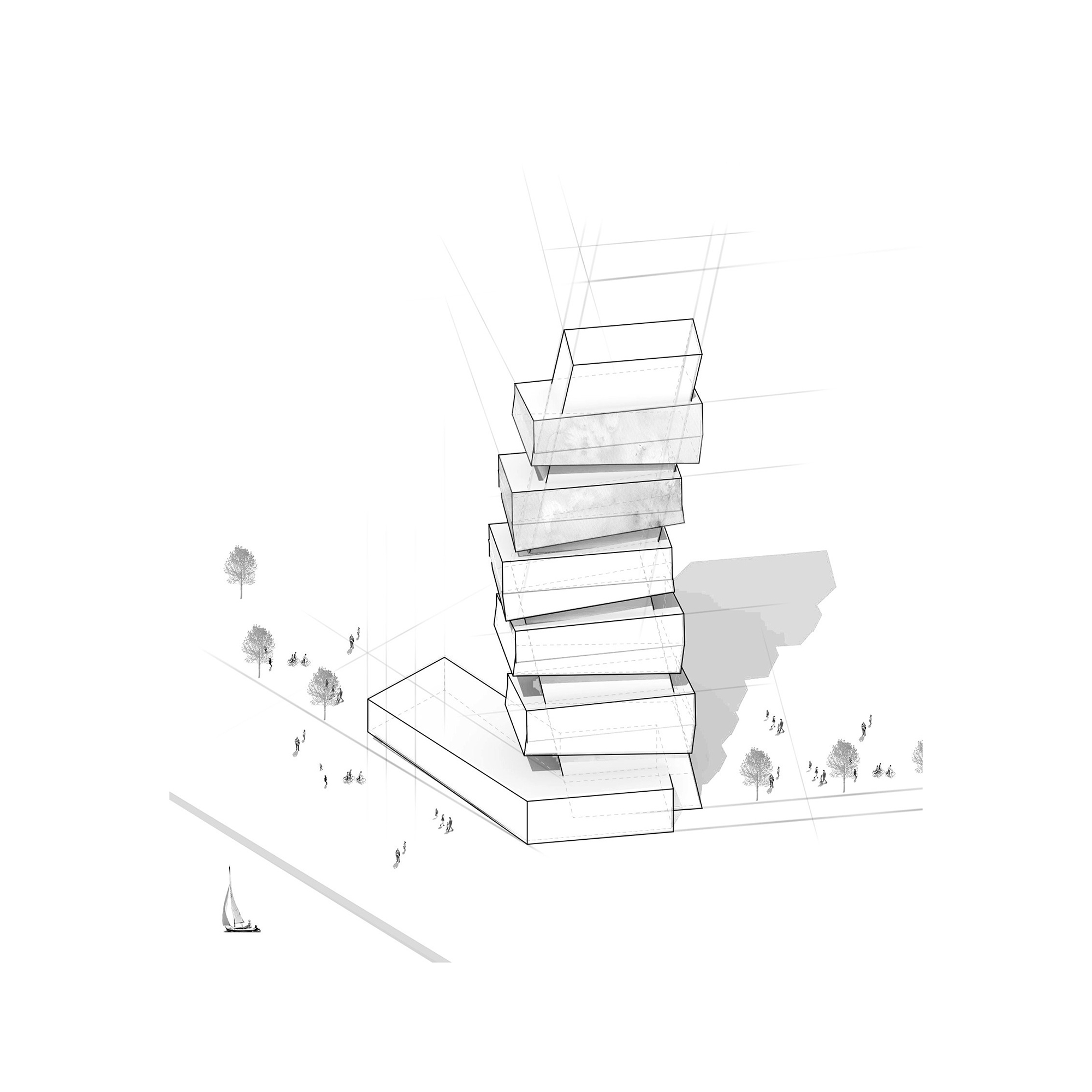 render elevation perspective vertical housing boston Water dystopia bw collage gsd